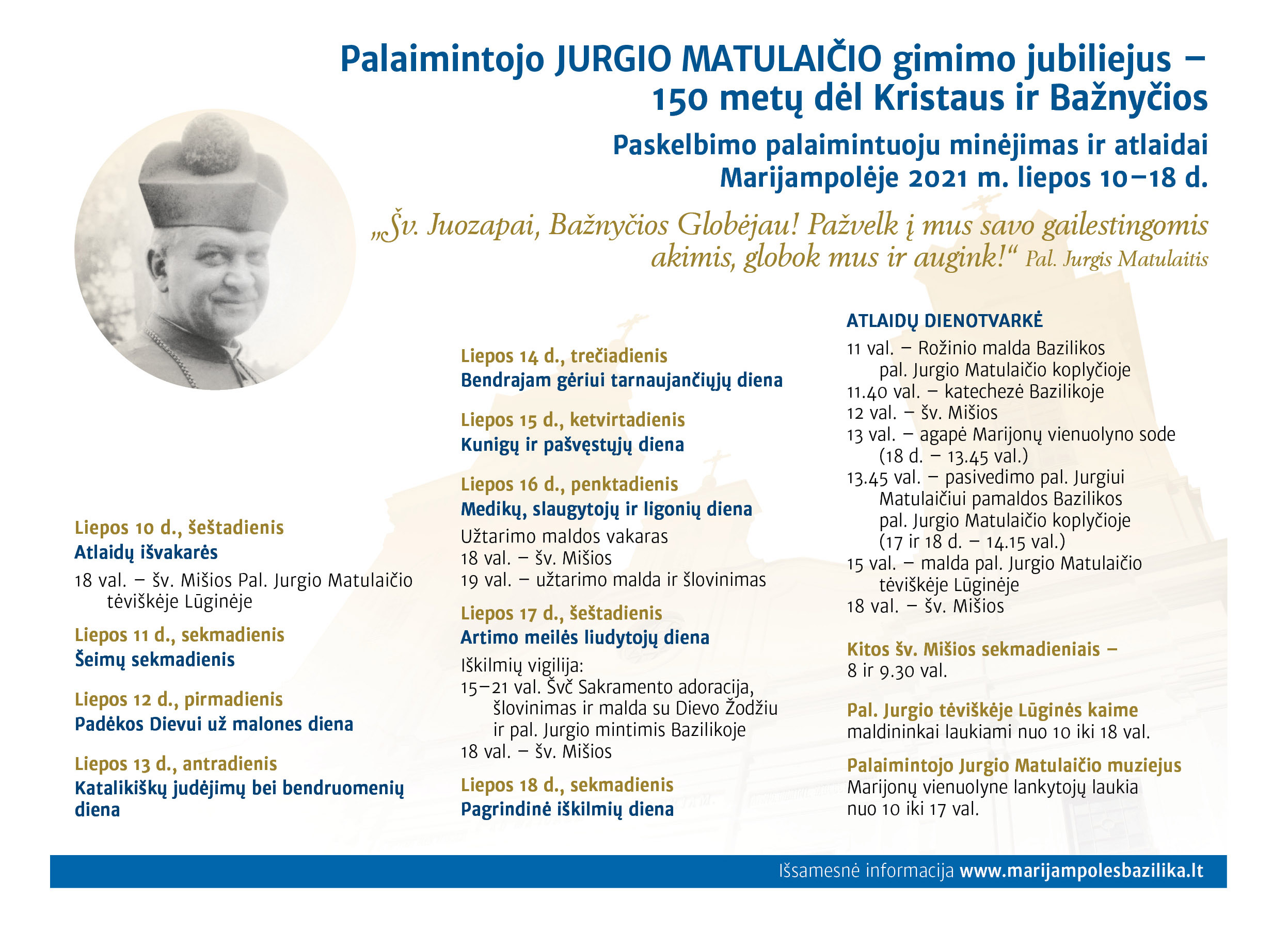 Dėkojame visiems, suskubusiems mus informuoti apie klaidingą Palaimintojo Jurgio Matulaičio atlaidų Marijampolėje tvarkaraštį, kuri spausdiname trečiame žurnalo viršelyje.